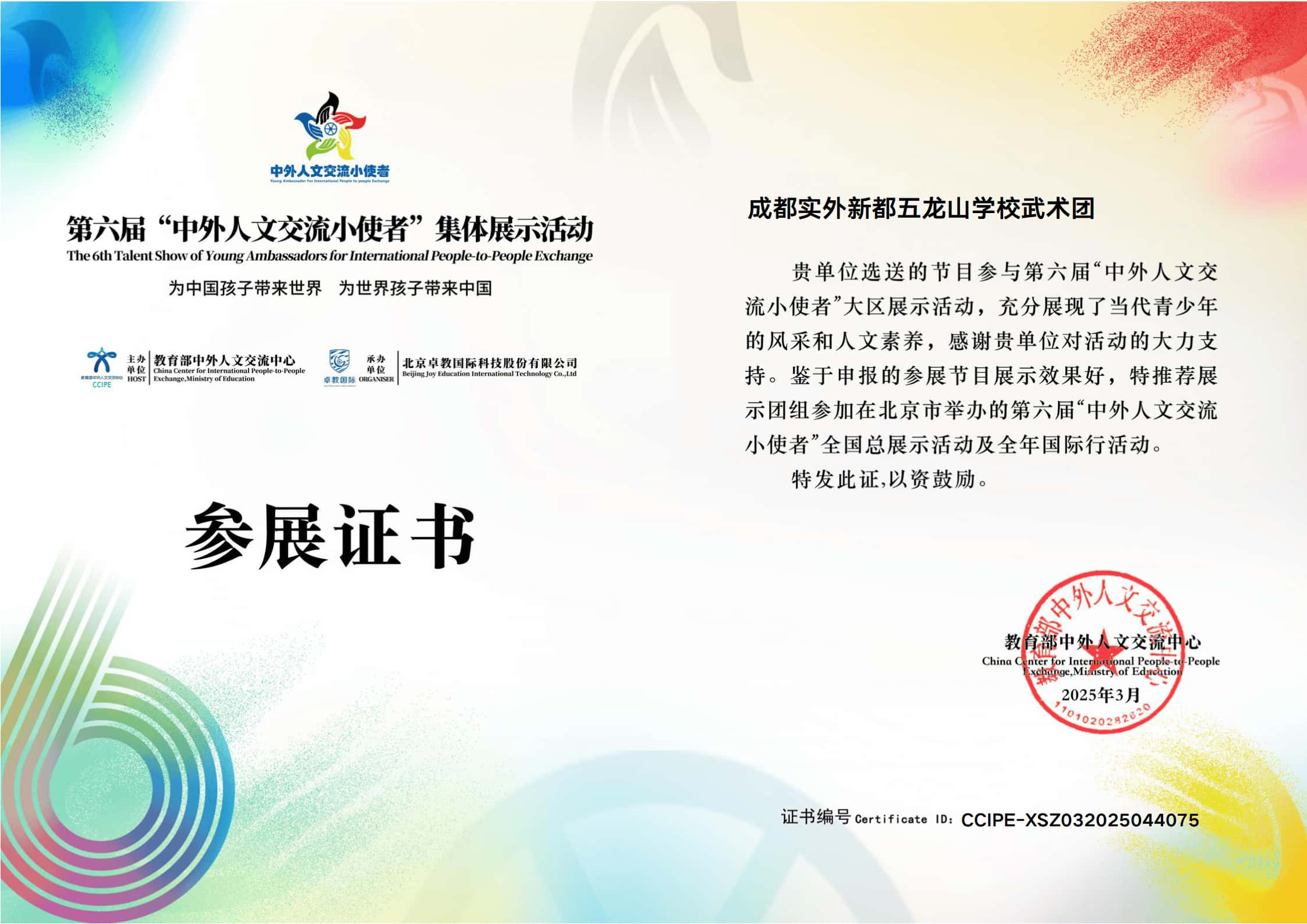 [學校獲獎]2024年5月四川省學生武術公開賽(武術套路):小學組團體總分一等獎